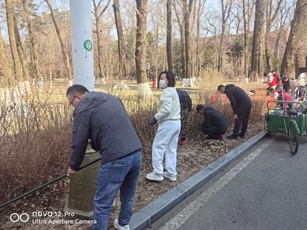 活动现场,支部党员与学生志愿者分工协作、通力配合,手持垃圾夹、扫帚、垃圾袋等清洁工具,集中对一教东侧绿化带枯枝落叶、杂草杂物、白色垃圾及卫生死角开展全方位清理整治。活动中党员先锋带头、冲锋在前,全体人员不畏脏累、干劲十足,经过共同清扫整治,校园绿化带环境焕然一新。